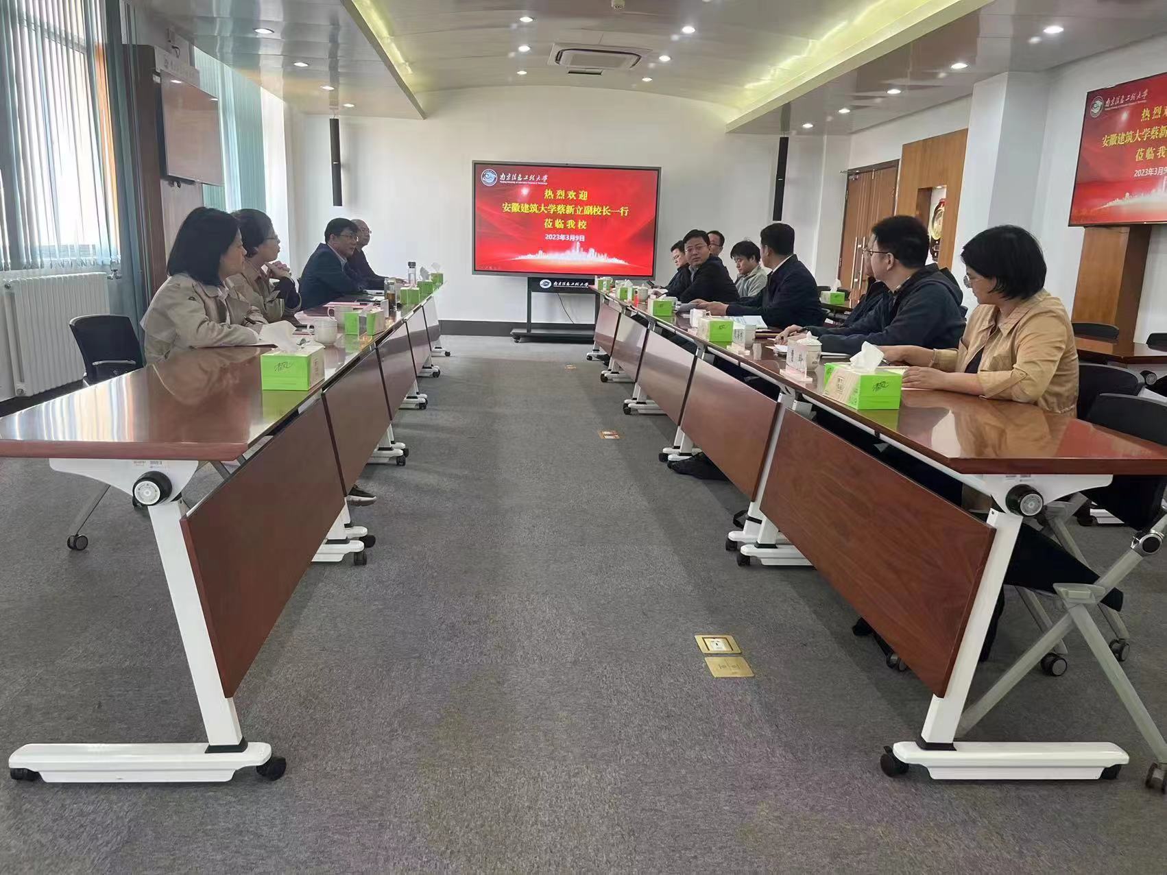 本网讯 为更好推动学校与南京信息工程大学共建长三角区域高等教育一体化示范区战略合作,近日,校党委常委、副校长蔡新立带队赴南京信息工程大学考察交流,深入调研国家级项目申报和科研平台建设先进经验,科技处、电信学院、机电学院、公管学院、经管学院等部门负责人参加调研。南京信息工程大学校党委常委、副校长陈海山热情接待了我校考察团一行。