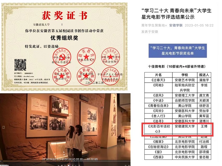 众多优秀的艺术表演创作青年相继涌现:由艺术俱乐部(摄影)王博同学主创、礼仪队马欣宇等同学主演的微电影作品《光影百年话初心》在安徽省大学生星光电影节评选结果中荣获“十佳微电影”佳绩;艺术俱乐部(舞蹈)罗欣怡等6位同学的表演作品《花儿为什么这样红》入围大学生“喜迎二十大”文艺汇演省级决赛,最终荣获舞蹈组三等奖。