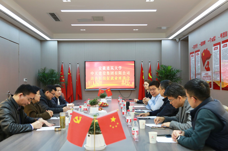 中天控股集团旗下中天建设安徽公司、中天建筑设计研究院两家单位参与座谈。座谈会上,用人单位负责人介绍了单位概况、标志性成果、人才需求以及往届安建大毕业生在企工作业绩等。