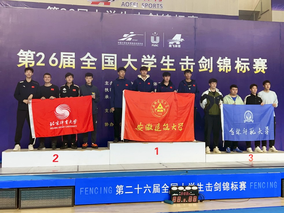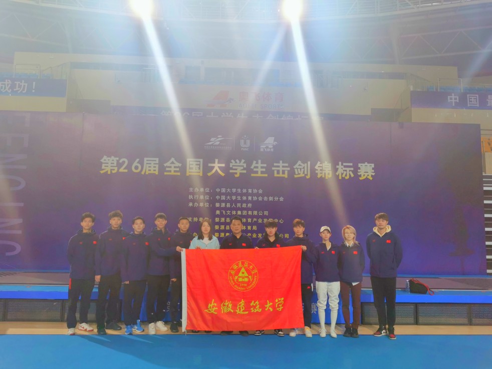 本网讯  近日,第26届全国大学生击剑锦标赛在江西省婺源县婺源体育中心开赛。作为国内规格最高的大学生击剑比赛,本次大赛吸引了全国51支队伍600余名运动员参加。安徽建筑大学击剑队与各高校同台竞技,经过运动员们的顽强拼搏,不懈努力,最终取得了四金两银一铜的骄人成绩。
