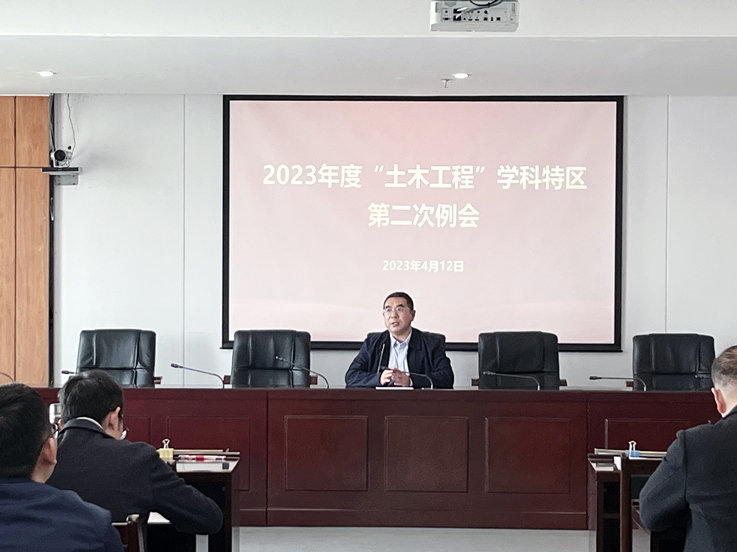 本网讯 4月12日,学校在实验综合楼第一会议室召开召开2023年度“土木工程”学科特区第二次工作例会,校党委常委、副校长蔡国军主持会议并讲话,发展规划处、土木学院、环能学院、材化学院相关负责人,学科特区团队成员参加会议。