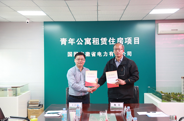 王开库和魏东分别代表校企双方签订了安徽建筑大学毕业生就业基地协议,并进行授牌。(文/图:夏军 吴晓羽;审稿:魏东)