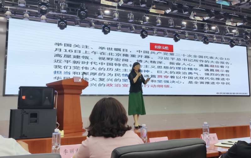 为思想把脉,把人心聚起来。近日,公管学院党委副书记、锦绣社区兼职党委委员马晓艳赴锦绣社区参加党建联席会议,并为与会200余名社区基层党员干部、辖区内企业党组织负责人作党的二十大精神宣讲。会上,马晓艳以《深学细悟聚力量 踔厉奋发新征程》为题,从深刻领会“党的二十大重大意义”“准确把握党的二十大精神实质”“基层党支部如何践行党的二十大精神”三个方面进行深入浅出、理论联系实际的分析讲解,提出基层党员干部应严格按照“一个信仰”“两个字”“三句话”“五个标准”,做政治上的明白人、群众的贴心人、发展的开路人、班子的带头人,立足岗位、对标对表、实干担当,做基层发展好榜样。
