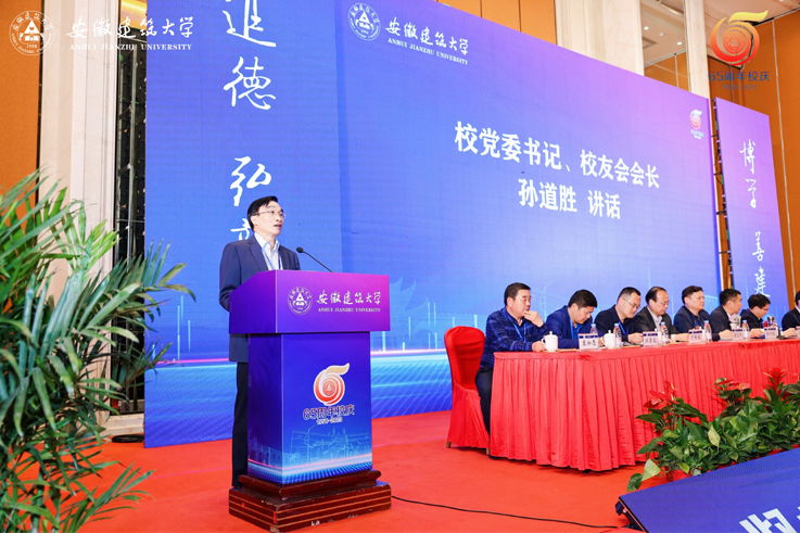 孙道胜发表讲话。他向校友报告了学校教育事业发展和进步、校友组织建设和校友工作开展及今后一段时期校友工作基本设想。他指出,65年来,一代代建大校友继承母校“吃苦耐劳、细腻规范、团结协作和独具匠心”的徽匠品质,在各行各业追求卓越、创造辉煌,为母校赢得社会声誉。校友是学校的宝贵资源,母校的改革、建设和发展离不开广大校友的鼎力支持。校友工作是学校的一项基础性、长期性、战略性工作,学校将进一步把校友工作摆在学校发展的重要位置,健全校院两级校友工作机制,动员全校上下和广大师生员工积极参与,开创学校校友工作新局面。学校将努力为校友终身发展提供最好的服务,进一步办好校友媒体和智慧管理系统,举办高质量校友活动,促进母校与校友、校友与校友之间沟通交流,为校企合作提供信息服务。他强调,今天学校迎来建校65周年华诞,也是在“十四五”发展的关键节点,要发挥各自优势,加强合作,更好地发挥校友在母校改革建设和发展中的积极作用,扎实推进学校高质量发展,不断提升学校综合竞争力。欢迎广大校友常回家看看!