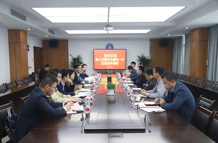 本网讯  5月6日,黄山市人民政府副市长戴炜、黄山市自然资源和规划局局长张旭、黄山市住房和城乡建设局党组书记、局长章继平一行7人来校调研交流。学校在南校区实验综合楼21楼第五会议室召开座谈会,校党委副书记、校长黄显怀,校党委常委、副校长蔡新立,校党委常委、副校长李早及相关单位负责同志参加会议。