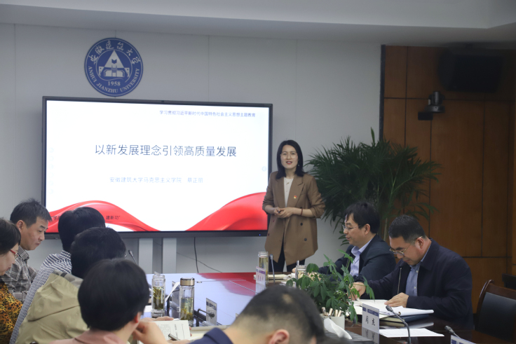 集中学习后,省委讲师团宣讲专家、马克思主义学院副教授蔡正丽作《以新发展理念引领高质量发展》为题的学习贯彻习近平新时代中国特色社会主义思想主题教育辅导报告。蔡正丽对新思想的内容和学习方法作了概要讲解,重点介绍了习近平经济思想中的新发展理念和高质量发展;新时代高等教育的重要任务是人才培养,人才培养要促进经济社会发展,把握经济发展,对高等教育的人才培养方向和改革等有重要意义;最后,她从一个高校教师的视角谈了对教育高质量发展的认识和看法,对学校今后的高质量发展有参考借鉴价值。