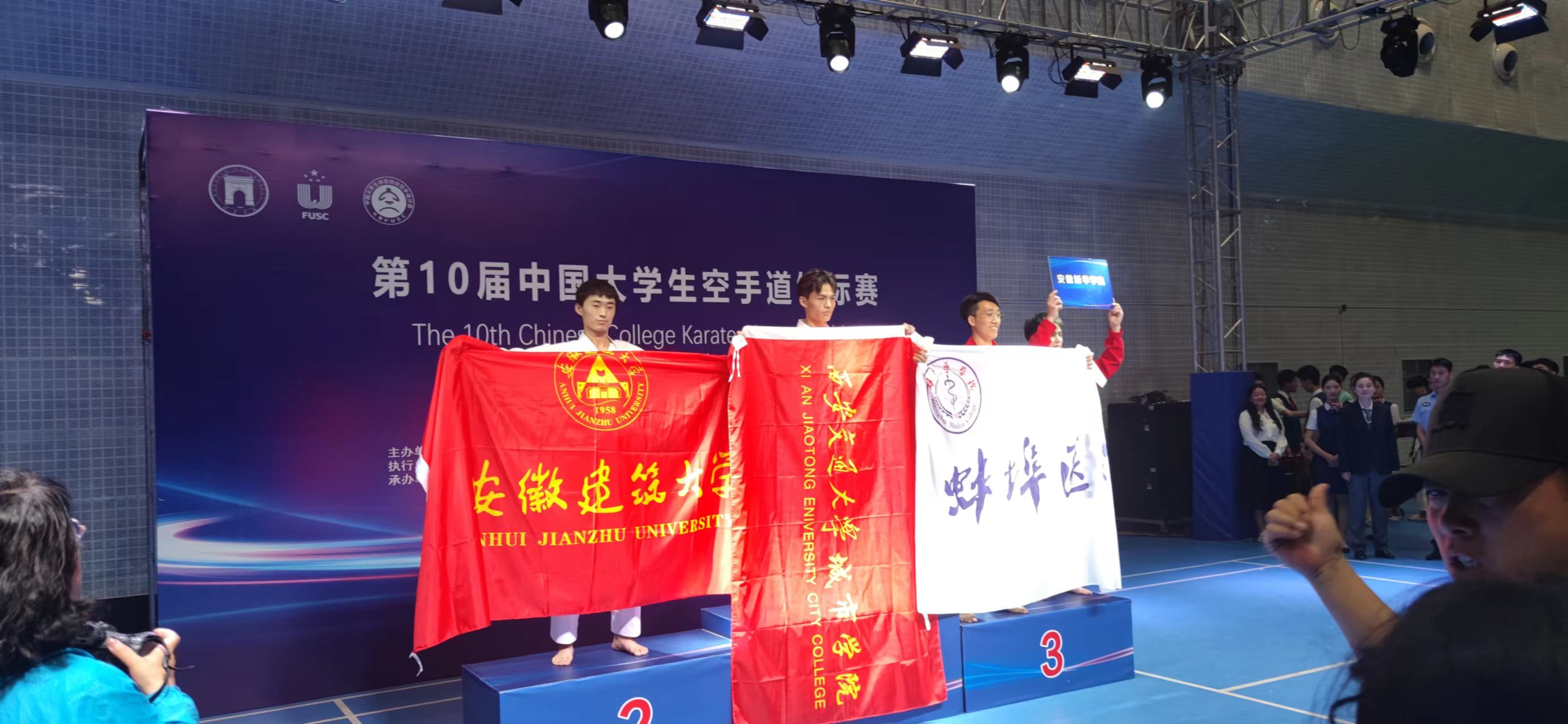 本次赛事由中国大学生体育协会主办,赛事分为甲组、乙组、丙A组、丙B组四个组别,每个组别分设男子、女子项目。我校空手道运动队在教练员常云的带领下,不畏强手、顽强拼搏,获得了男子59公斤级亚军,在男子团体组手、男子团体型等4个单项中均取得第五名的成绩,并获得“体育道德风尚运动队”的光荣称号。