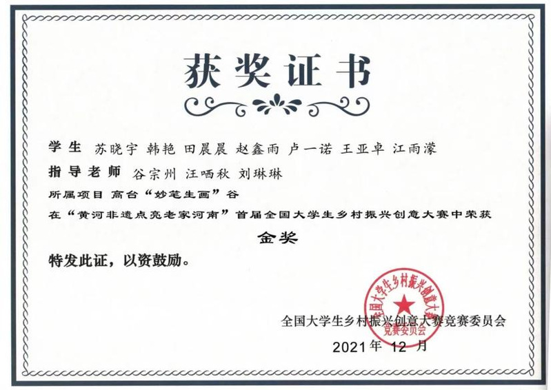 八月份河南突发灾情牵动整个团队的心,看到尽在咫尺的自然灾害,让谷宗州老师及学生们为河南人民感到揪心,于是团队内部自发的进行了捐款,为防汛抗洪驰援河南献上了自己微薄的力量。受突发的灾情影响,项目的选址和设计图稿以及方案都重新选择并设计。为了助力乡村振兴,团队重新选择高家台画家村为新的课题。突发状况推迟了整体的进度和实地调研时间,这个阶段团队不免非常紧张和迷茫。在他带领下,学生们夜以继日以最快的时间进行调整。在夜晚的台灯下恶补当地历史文化,在激烈的上下线会议上讨论,不断修改图稿的创作,软件操作技术的熟识,确定了新的创作思路和稿图方案。随着大赛不断深入,项目不断完善。在大赛邀请下,谷宗州老师带领团队前往安阳市林州市石板岩镇高家台村深入调查以创造出更贴合当地情况的设计推广方案。到高家台村后,他和学生们寄宿在当地村民家中。白天不断走访考察,晚上回来整理报告,条件虽然艰苦,但心是火热的。回校后,则根据考察报告调整设计方案,最终数个月的辛勤付出,换回的是社会的认可和学生激动的泪水。
