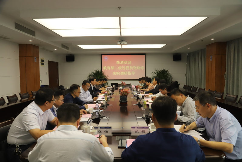 本网讯 9月26日下午,教育部国际司二级巡视员张晓东来到我校,就2023年国际产学研用合作会议、中外双导师研究生联合培养等方面工作召开调研会。省教育厅二级巡视员朱乃韬、省教育厅科研处、省教育厅外事处有关负责同志陪同调研,合肥工业大学、安徽大学、安徽农业大学等7所省内高校相关部门负责人参加了调研会。会议由校党委副书记、校长黄显怀主持。