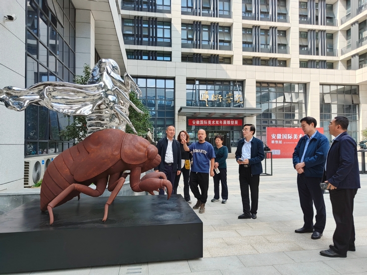 本次安徽国际美术双年展雕塑展走进安徽建筑大学,让大学生沉浸式体验雕塑之美,推动美育课堂向开放式公共文化场所延伸,拓展美育学习实践空间,打造“行走的美育课堂”。雕塑作品进行集中展示,不仅为师生们提供艺术实践舞台,更能感受和学习到雕塑专业的剧场式服务。本次展览不仅带来了视觉上的享受,也进一步启发大家对美育融入校园文化建设的思考。(作者:何文宏 袁婧卓 ;审稿:潘青)