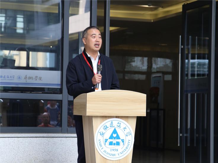 安徽建筑大学党委常委、副校长闵杰致欢迎词,感谢各位雕塑艺术家带来的精彩视觉盛宴,给校园营造了浓郁的校园艺术氛围,激发学生欣赏美、创造美的能力,为校园文化建设注入新的内涵。