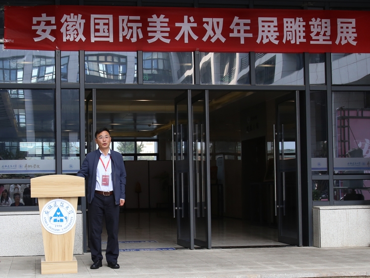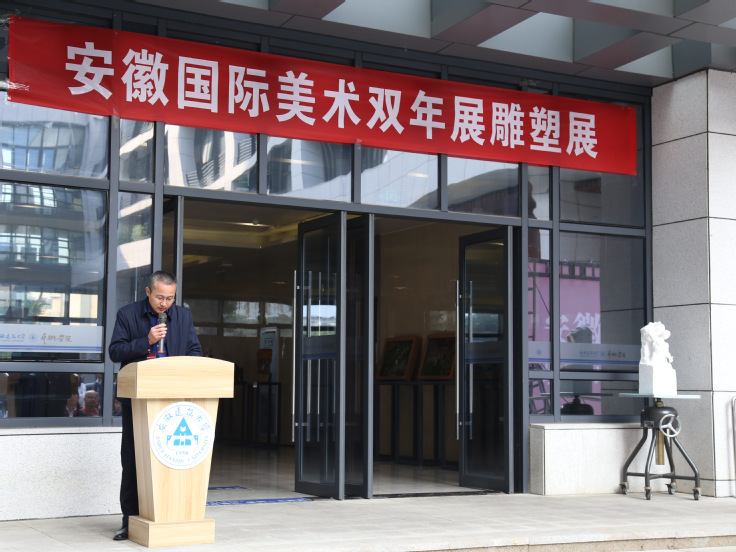 本网讯 安徽国际美术双年展雕塑展于10月11日-17日在安徽建筑大学艺术学院举行,本次展览集中展示了100余件国内外雕塑家的雕塑精品。本次展览由中华文化促进会公共艺术委员会、芜湖市文化和旅游局、芜湖市文学艺术界联合会、安徽省雕塑协会联合主办,安徽建筑大学艺术学院、安徽省文旅创新发展研究院等单位承办。艺术学院副院长邢瑜(主持工作)主持开幕式。
