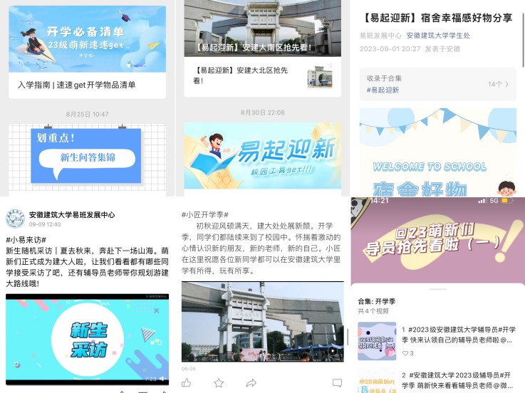 小屏幕彰显大智慧,多维度谱写创新篇。学校充分发挥官网、易班·今日校园、微信公众号、QQ、视频号等线上新媒介的教育引导作用,深耕网络思政教育至入学教育全过程。开设“迎新季”“易起迎新”“开学季”“小匠速递”等网络专题,发布新生入学温馨提示,分享报到攻略,普及防诈知识。直击迎新现场,解答新生疑问,帮助新生尽快适应新生活。开通图文直播“云平台”,邀请家长共同观赏新生军训风采与开学典礼盛况。校易班发展中心在易班“优课”平台发布“安徽建筑大学2023级新生入学教育”课群,结合校规校情开设了理想信念教育、国防安全教育、民族团结教育等系列公共课程和由我校心理健康中心教师主讲的校本课程“大学新生的入学适应及其调试锦囊”,新生可加入课群学习、互动并参加在线测试,便捷式完成入学教育专题学习。报到当天,新生可以通过“迎新系统”扫码报到,高效完成报到各项手续,实时抓取最新数据,打造全新入学教育体验。党委学工部及时上线“学工系统”,“一站式”服务覆盖学生教育管理全过程,启动学生线上心理普查,“以心迎新”筑牢学生心理健康屏障。学校不断精进教育理念、丰富教育内容、创新教育手段,为入学教育过程化管理不断注入新活力、增强新动力、激发新潜力,唱响网络育人主旋律。
