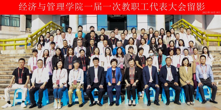 本网讯 为充分发挥全体教职工在学院民主管理、民主监督和民主决策中的作用,积极完善二级学院教职工代表大会制度,进一步调动教职工建功新时代的积极性和创造性,10月18日,经济与管理学院一届一次教职工代表大会在北校区F楼三楼报告厅隆重举行。校党委常委、副校长李早,校工会主席胡雯受邀出席本次会议,50名经管学院一届一次教代会正式代表、16名列席代表及2名校友代表参加大会。