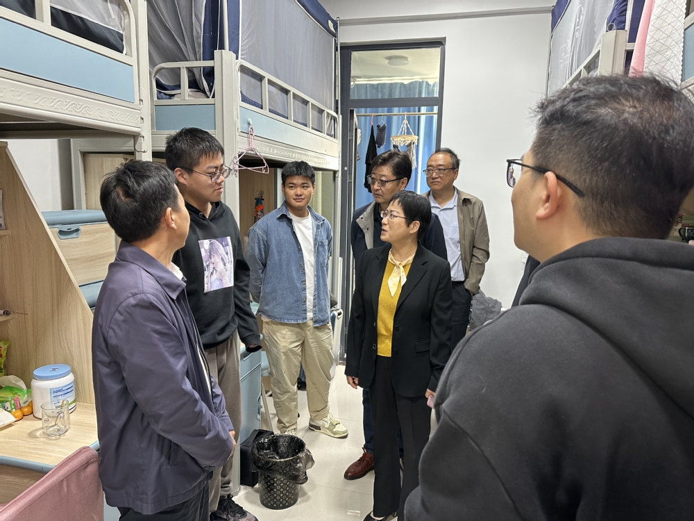10月20日,王玉兰一行赴天长金牛湖产教融合园区看望联培拔尖班学生,金牛湖产教融合园区党委书记蒋元春等园区相关负责同志陪同参观考察。王玉兰一行参观了可视化教学中心、新能源实验室、智慧型研讨教室,走访了学生宿舍和食堂,亲切看望了两校联合培养的拔尖班学生,关心询问同学们在园区的学习和生活情况,对同学们表现出的良好学习状态给予充分肯定,嘱咐各位同学一定要珍惜良好的学习环境,充分利用学校提供的各类资源,发扬艰苦奋斗的精神,争取学有所成、学有所获。(文/图:刘志伟;审稿:孙永)