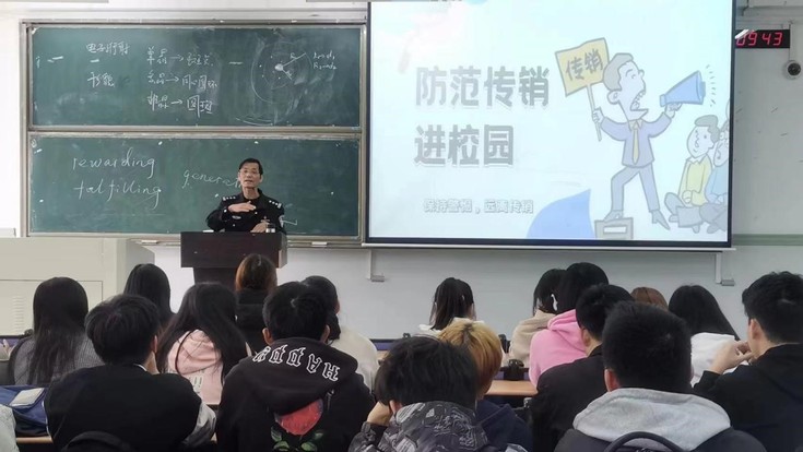 学防传销知识,建平安校园。虽然目前传销手段层出不穷,但我们打击传销的决心不变,学校邀请合肥公安濮警官为学生开展防范传销进校园的安全宣传,从“什么是传销”“传销的惯用伎俩”“传销的危害”以及“如何防范传销”四个方面来引发同学们对于传销危害的思考。活动现场,濮警官通过实际举例的方式向同学们宣讲,让同学们了解传销危害的同时也起到警示作用。