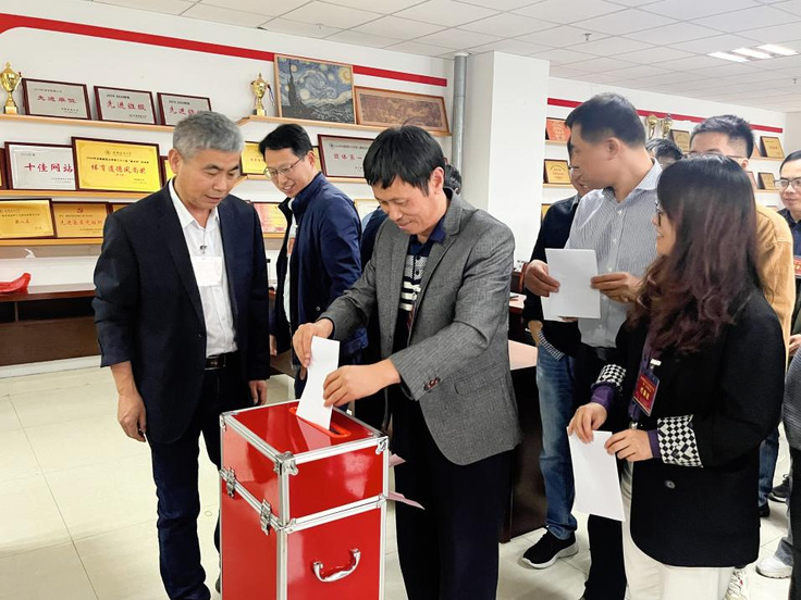 在第二次全体会议上,学院与会代表举手表决通过《关于学院工作报告的决议(草案)》《关于分工会工作报告决议(草案)》,选举产生了学院第一届教职工代表大会执委会委员。