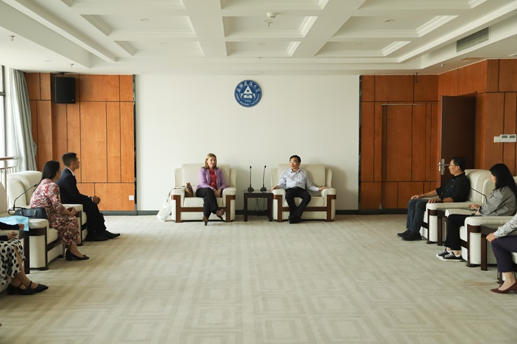 黄显怀在徽风楼21楼会议室与来访人员进行座谈交流,国际交流合作处负责人参加会见,双方就共建中外合作办学项目等事宜进行了商讨。黄显怀代表学校向玛丽·辛普森一行的来访表示热烈欢迎,从学科专业、师资队伍等方面简要介绍了学校的基本情况。他表示,玛丽·辛普森一行的来访,充分体现了爱尔兰方对两校合作的重视。本次两校合作是安徽建筑大学国际化战略的重要一步,将为师生提供更加开阔的国际视野,希望以此次交流为契机,加深双方的互信合作,在师生海外交流、校际人才联合培养等方面取得更加深入的合作成果。
