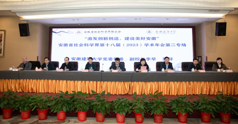 本网讯 2023年11月18-19日,安徽省社会科学界第十八届学术年会“激发创新创造,建设美好安徽”专场在合肥召开,会议由安徽省社科联主办,安徽建筑大学承办,公共管理学院、长三角国际(黄山)创意研究院协办。来自中国科学技术大学、合肥工业大学、安徽大学、安徽省委党校、安徽省财政厅等50余家高校院所和政府机构的近200名专家和代表出席会议,合肥新闻联播全程转播。