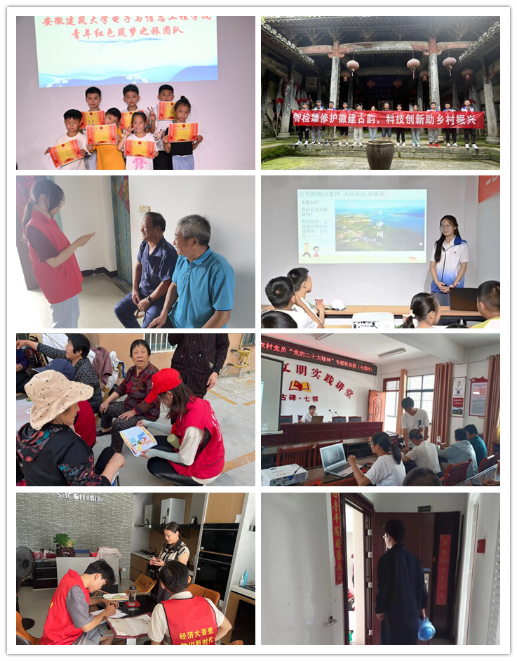 为学之实,固在践履。支部学生党员自觉前往社区报到参加志愿服务,他们是深入个体经营户和产业单位进行第五次全国经济普查的普查员,是帮助留守老师进行养老认证的小助手,是乡村留守儿童的小老师。同时,电信学院选拔优秀党员、入党积极分子组成“青年红色筑梦之旅”团队,赴舒城县汤池镇三江村为当地孩子科普非物质文化遗产知识,宣传普及非遗文化;组成“徽韵筑梦科创”实践专项团队,先后赴歙县棠樾村、许村等地,参观非物质文化遗产项目“徽州三雕”之一的砖雕传承人代表方卫新师傅的工作间并欣赏非遗作品,利用航拍和数字化技术对牌坊、祠堂等具有徽派建筑和文物进行基础数据的收集,为后续修复提供了技术支持,助力数字化乡村建设和古建筑保护研究。