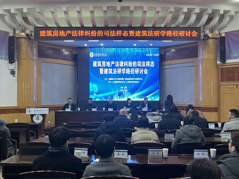 本网讯 近日,安徽建筑大学2023年易海法学论坛在北区建树楼三楼报告厅顺利召开。本次会议由公共管理学院和安徽省建筑房地产法律研究中心主办,公管学院校友分会、法律协会承办,论坛聚焦学校法学专业特色,以“建筑房地产法律纠纷的司法样态暨建筑法研学路径研讨”为主题,邀请了安徽省高级人民法院高级法官王依胜作主旨报告,校友工作处、公管学院、建筑房地产法律研究中心相关领导,来自公检法系统、律所、省直机关等校友,校内法学专业师生共80多人参加了本次会议。