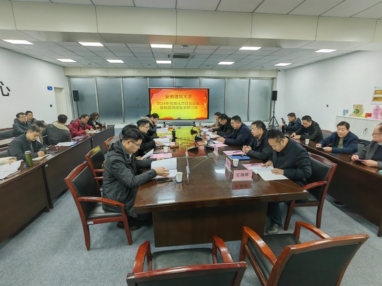 本网讯 12月29日,学校邀请合肥工业大学、安徽大学、合肥学院、合肥师范学院和安徽公安学院的信息化专家在南校区电教楼一楼智慧校园展示大厅召开2024年安徽建筑大学信息化项目建设方案论证会暨校园网络安全研讨会,校党委常委、副校长蔡国军出席并主持会议,招投标管理办公室、国有资产管理处、财务处和信息网络中心等部门负责人参加会议。