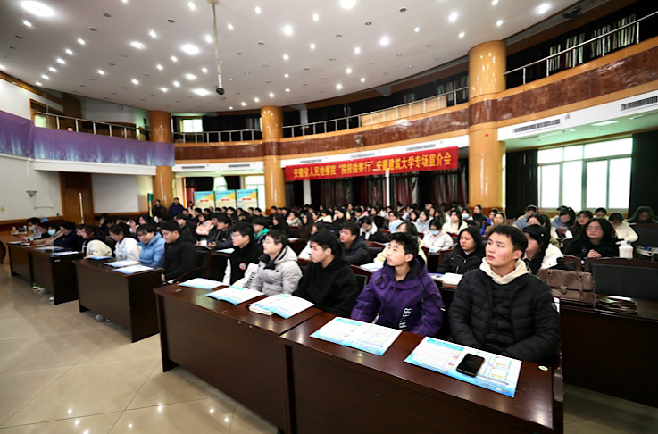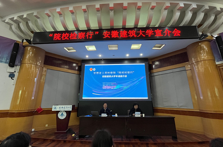 本网讯 为深化毕业生们对检察院以及检察机关职能的了解,推动毕业生更充分更高质量就业。12月29日,学校在北校区建树楼报告厅举办安徽省人民检察院“院校检察行”安徽建筑大学专场推介会。校党委常委、副校长李早主持推介会,经管学院、公管学院相关专业近200名学生参加。