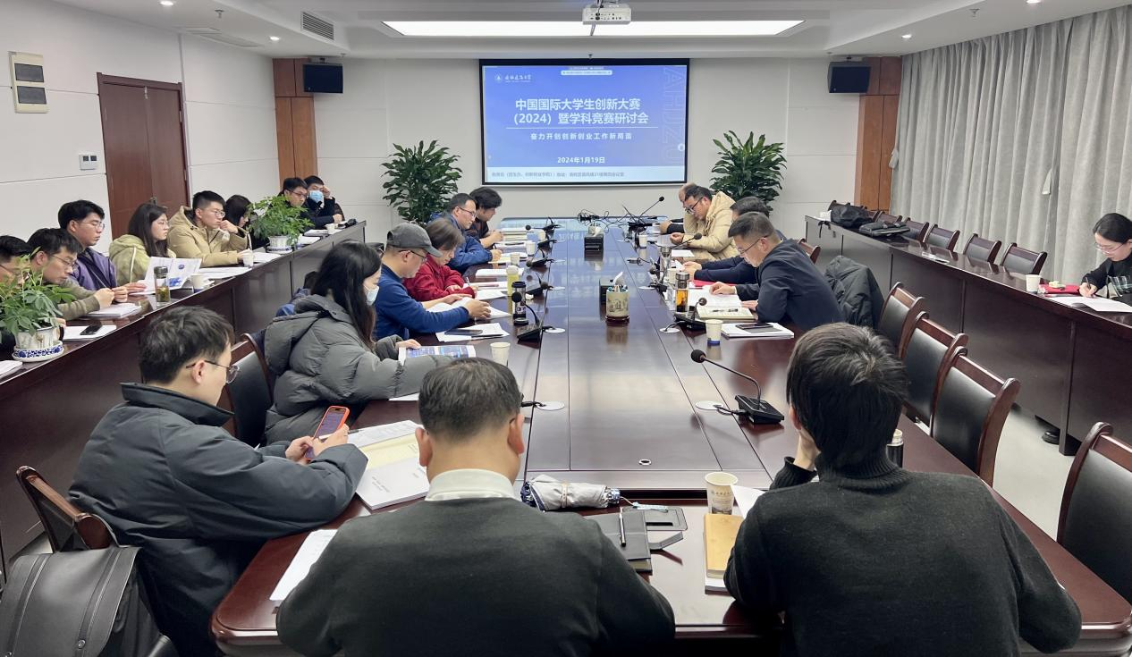 本网讯 近日,2023年度学科竞赛总结及发展研讨会在南校区徽风楼21楼第四会议室顺利召开。安徽农业大学王韦韦、安徽工业大学张辰啸两位中国国际大学生创新大赛(原中国国际“互联网+”大学生创新创业大赛)国赛金奖第一指导教师受邀参加研讨并分享指导经验,创新创业学院、校团委、2023年“互联网+”省金指导教师代表、11个本科生学院双创工作代表、学生代表等参加了本次研讨会。研讨会由教务处(招生办、创新创业学院)副处长丁超主持。