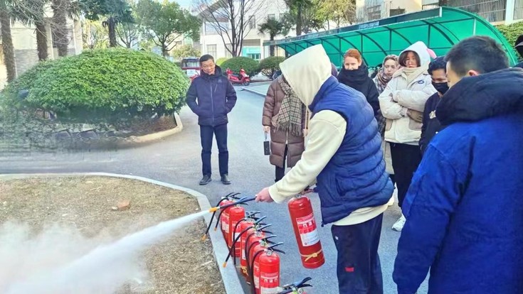 随后,为了提高留学生的消防安全意识和自救能力,保卫处特别组织了一场消防演练,本次演练主要面向寒假留校的留学生。保卫处消防站工作人员向留学生介绍了各类消防器材的用途和使用方法,包括灭火器、灭火毯、消防栓等。同时讲解了火灾发生时的应对措施和逃生技巧。随后,留学生们在保卫处消防站工作人员的指导下进行了实操演练。