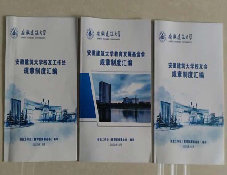制定《安徽建筑大学校友分会管理办法》等规章制度8项,编印校友工作处、校友会和基金会规章制度汇编,规范校友与基金工作,并落实到位。