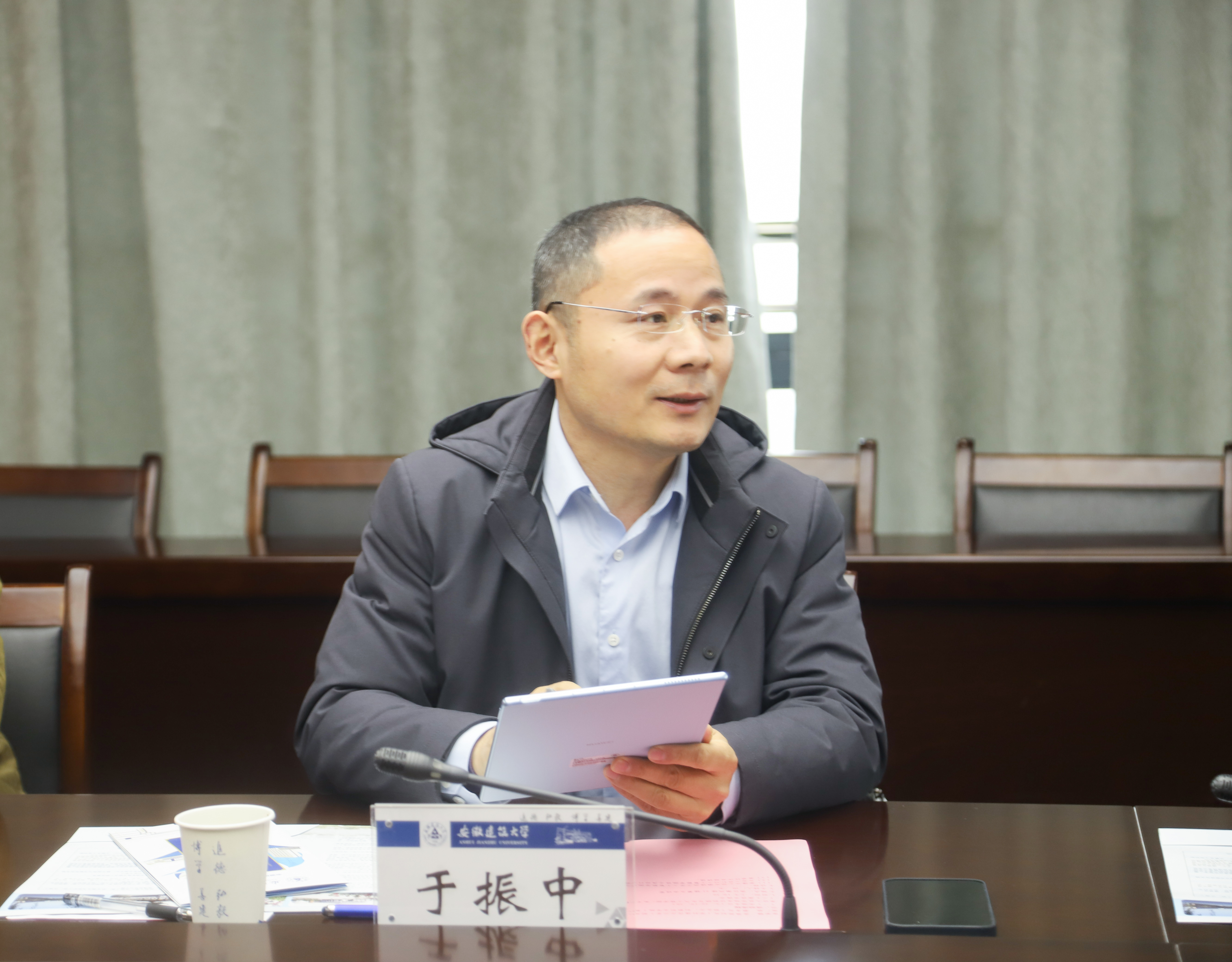 黄显怀代表学校对合肥合锻智能制造股份有限公司、合肥市智能机器人研究院一行的到来表示热烈欢迎,并提出希望能开展深度合作,三方合力,依托我校建筑专业特色,形成良好的运行模式,将人工智能学院建设成一所与企业共享资源、国内有影响力、创新办学模式的新型学院。