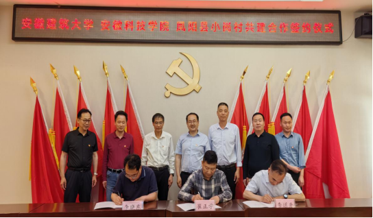 周群之对安徽建筑大学公管学院、安徽科技学院人文学院的到来表示热烈欢迎,希望通过三方共建,培养越来越多懂农业、爱农村、爱农民的乡村振兴人才。公管学院党委委员、副院长连瑞瑞介绍了学院党建与发展情况,希望以此次签约为契机,深度合作,相互赋能,共同为乡村振兴和新型城镇化发展出智出力。安徽科技学院党委委员卫胜表示对三方合作充满期待,人文学院院长李晓东对党建共建与发展合作提出若干建议和方案。三方代表共同签订党建共建协议,并相互授牌。我校公管学院人社系教师党支部与安徽科技学院人文学院中文系教师党支部同为安徽省高校党建工作样板支部培育创建单位和安徽省高校“双带头人”教师党支部书记工作室立项建设单位,双方达成共建意向并现场签订了《支部共建合作协议》。“志同则心同,心同则力同”,此次共建将有助于协同资源力量,强化组织功能,提升建设效能。