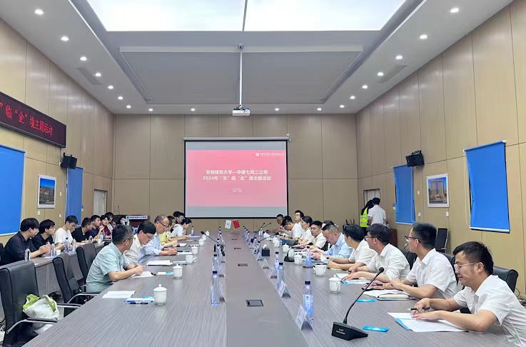 在项目部会议室,校企进行交流座谈。中建七局二公司专务李欣致辞,热烈欢迎学校师生的到访,对学校长期以来的关心和支持表示衷心感谢,并介绍了公司的发展历程、业务范围、人才培养及公司获奖等情况。她表示,安徽建筑大学是安徽省唯一一所以土建类学科专业为特色的多科性大学,是建筑行业人才培养的摇篮。公司目前有我校毕业生117名,这些优秀毕业生现已成为公司不可或缺的中坚力量,在关键岗位上发光发热,这与母校的辛勤教育密不可分。她强调,公司高度重视与安徽建筑大学的合作,期待通过此次交流,建立全方位、多层次的校企合作关系,强强联合实现共赢。