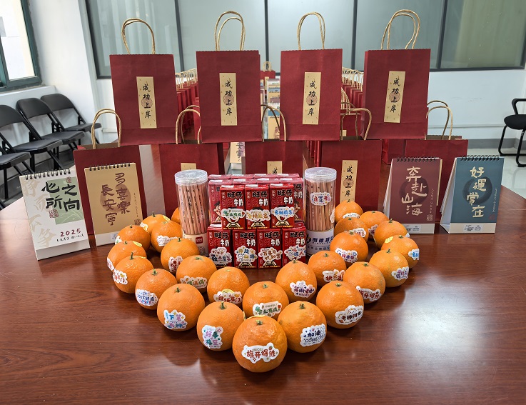 本次活动精心准备了百余份“加油包”,每一份都寄予着对考研学子的美好祝福:一支“金榜题名笔”,象征每一位考生能“笔笔如意”,书写辉煌答卷;一本“祝福日历本”,承载着对未来的美好期许,随手翻开都是满满的激励;一瓶“旺仔牛奶”,用浓浓的奶香传递拼搏后的甜蜜回甘,寓意“旺气冲天”;一个“橙功上岸”甜橙,寄托了对考研学子们的美好祝愿,希望他们的梦想能够如愿以偿、心想事成。