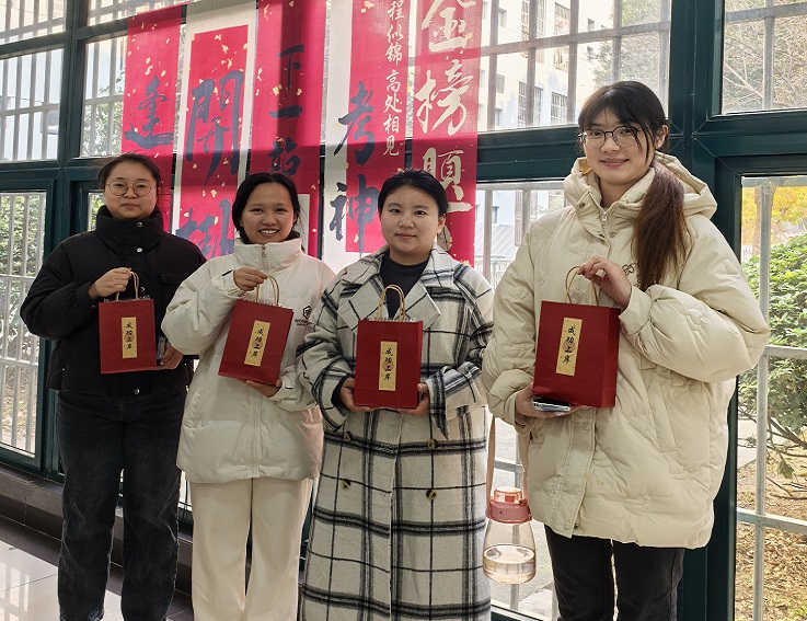 本网讯 日月不用催,追梦自奋进。2025年研究生考试开考在即,考研学子们的复习备考也进入了最后的冲刺阶段。为帮助考研学子缓解压力,坚定信心,学校于12月18日中午,在紫云路校区和金寨路校区学生公寓开展考研“加油包”发放活动,为即将奔赴考研战场的学子们送上关怀与祝福。