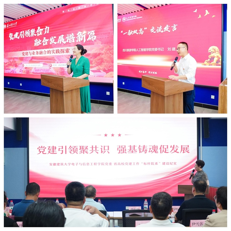 在“一融双高”交流座谈会上,张润梅用详实的工作举措和鲜活的案例,生动展示了省高校党建工作“标杆院系”建设纪实。苏州科技大学电子与信息工程学院党委副书记(主持工作)伯洁分享了党建与业务融合的生动实践探索。四川旅游学院人工智能学院党委书记刘建从“12345政治建设工作法”到“6个通过”品牌矩阵,再到“五育工程”“科研攻关先锋岗”,全面呈现了学院“党建与事业一融双高”的生动实践。随后,与会人员围绕党建与业务深度融合、以高质量党建引领事业高质量发展等议题展开热烈研讨。