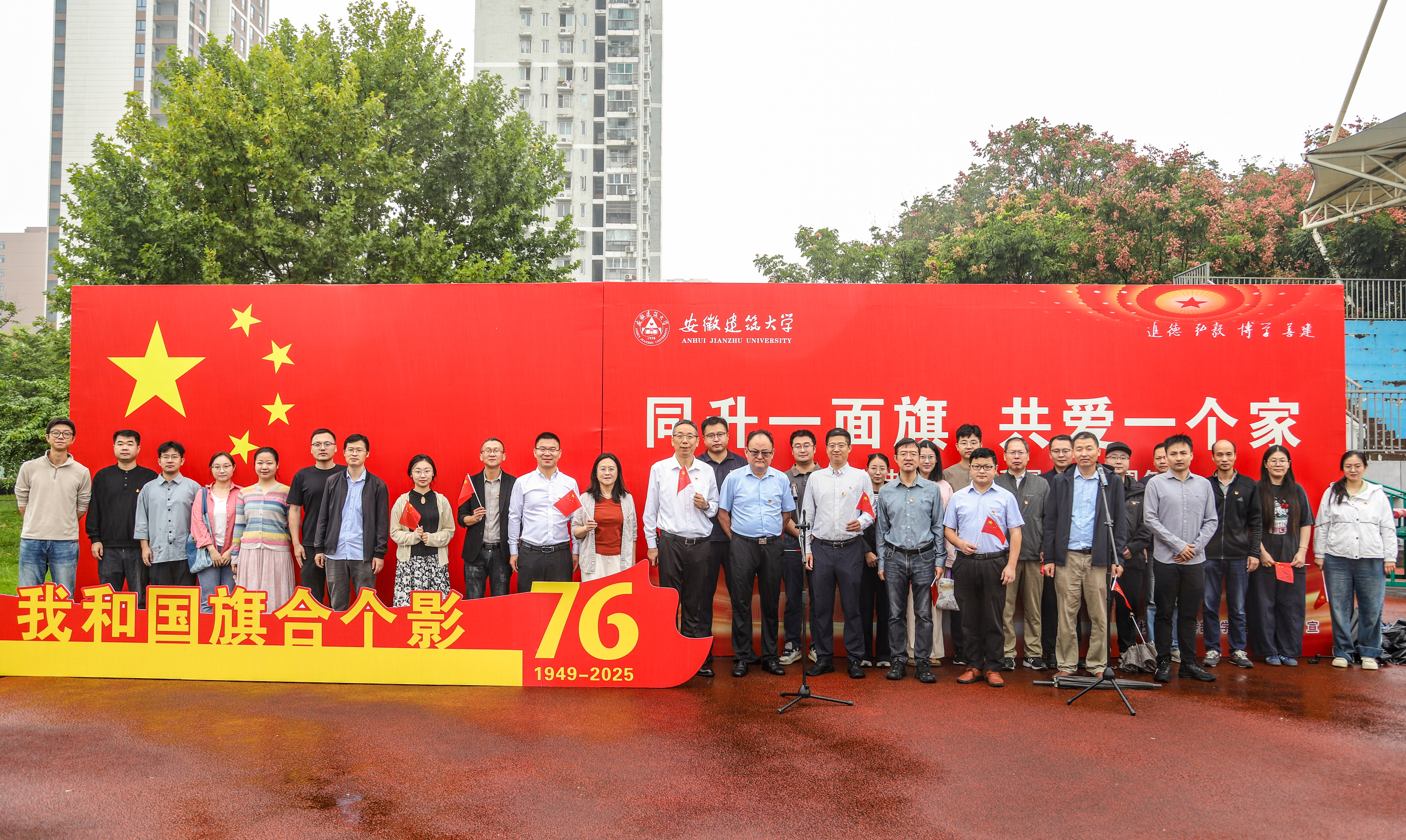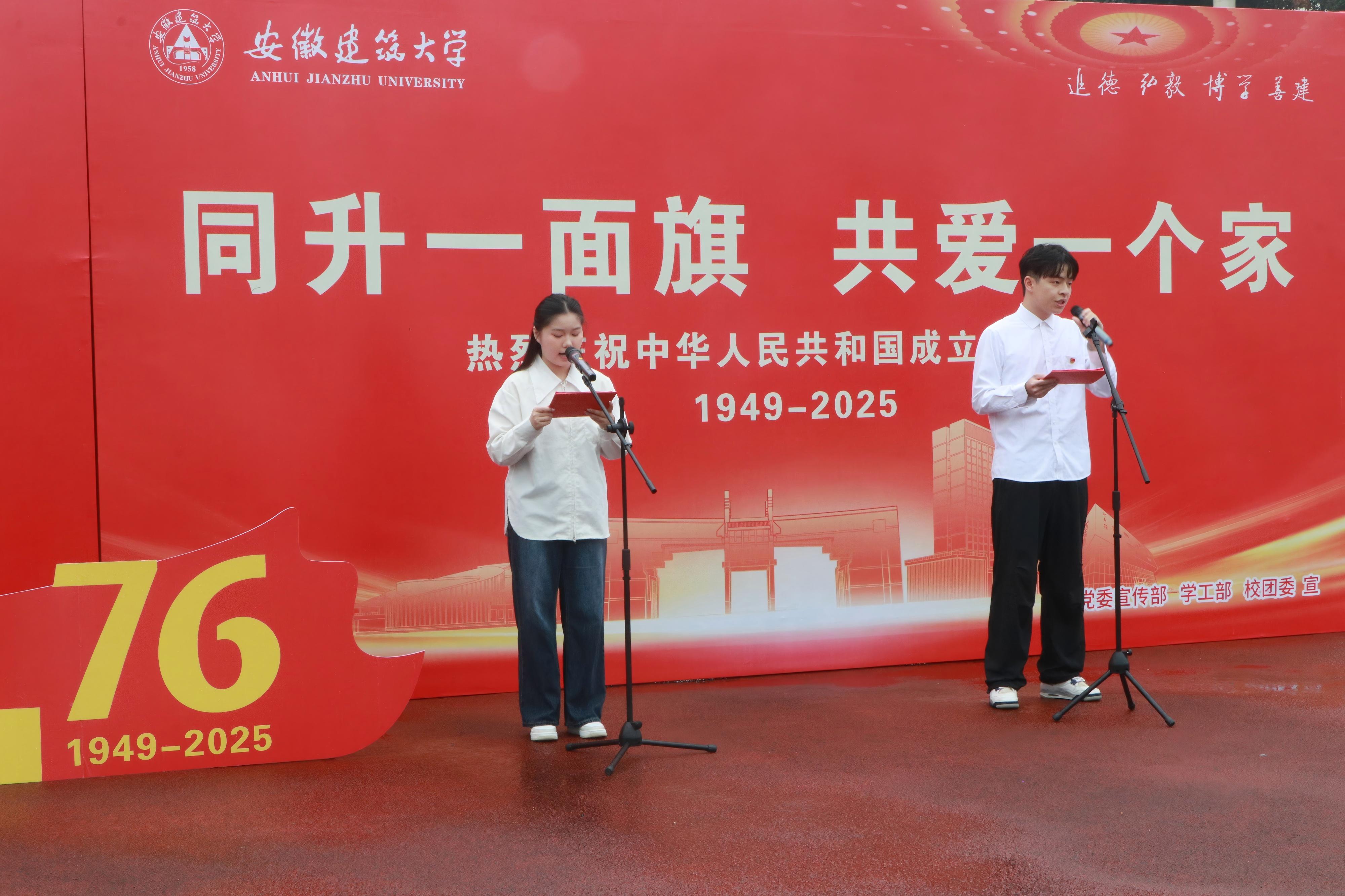 此次国庆升旗仪式严格落实《中华人民共和国国旗法》《新时代爱国主义教育实施纲要》要求,是安徽建筑大学“大思政课”建设的生动实践,更是学校结合“建筑类高校”特色推进“五进”升旗活动的重要载体。通过庄严仪式教育、真挚情感表达和温馨互动环节,学校不仅进一步激发全校师生的爱国热情,更将“家国情怀”与“专业担当”深度融合,凝聚起推动学校高质量发展、服务国家战略需求的奋进力量。