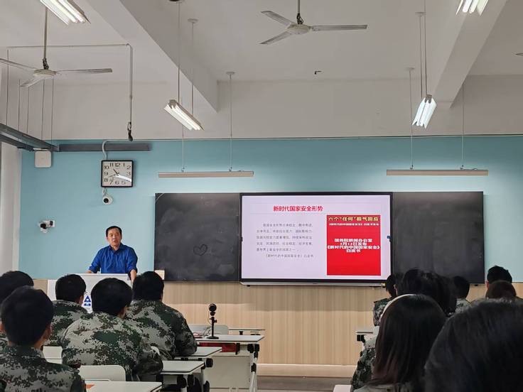 曹书成教授以“深刻把握新时代国家安全形势”为题,为新生们进行了一场内涵丰富的专题授课。曹教授系统阐述了当前我国国家安全面临的内外形势与风险挑战,深入解读了总体国家安全观的核心理念与时代内涵。勉励同学们要深刻认识维护国家安全的极端重要性,自觉增强国家安全意识,将爱国情、强国志、报国行融入日常学习与未来发展中,成为国家安全的坚定守护者。