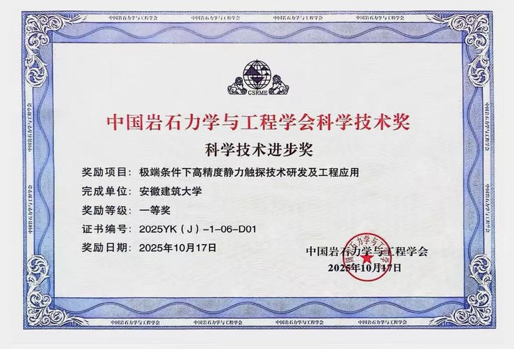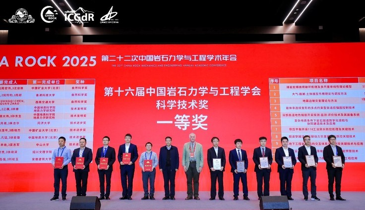 本网讯 10月17日至19日,CHINA ROCK 2025第二十二次中国岩石力学与工程学术年会在雄安新区顺利召开。在大会闭幕式上,隆重颁发了第十六届“中国岩石力学与工程学会科学技术奖”。蔡国军教授牵头申报的“极端条件下高精度静力触探技术研发及工程应用”项目,荣获科学技术进步一等奖。