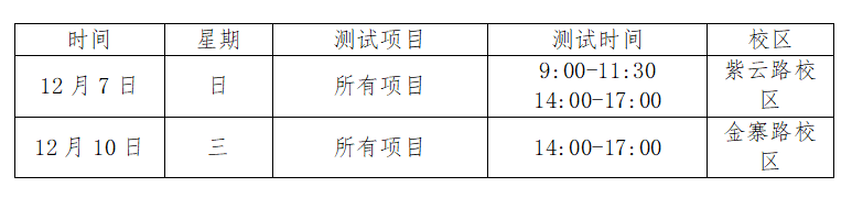 一、测试对象:2024中级班、2023级、2022级全日制本科生未参加测试或有缺项学生