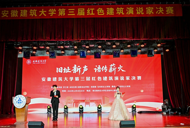 12月3日晚,安徽建筑大学第三届“红色建筑演说家”决赛在紫云路校区大学生活动中心举行。