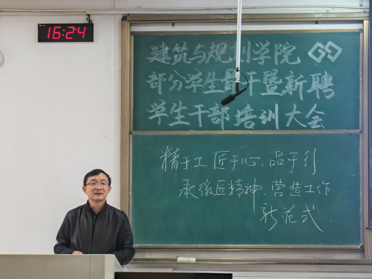 学院坚持将思政引领贯穿培训全程,夯实学生骨干的思想根基。学院党委书记吴运法以“精于工,匠于心,品于行——承徽匠精神,营造学生工作新范式”为主题,结合自身教学科研与实践阅历,围绕“当前建筑类专业面临的教育形势与要求”“成为一名称职的学生干部”等方面,鼓励学生干部要争当学风建设的“排头兵”,以实际行动带动身边同学,营造崇学尚学的优良学风。学院党委副书记刘浩以“学生骨干榜样示范”为主题,围绕“如何成为一名值得信赖的学生干部”和“努力成为一名善作善成的学生干部”,鼓励学生骨干用心、用情、用力勇担职责使命,主动站在学风建设“舞台中央”,发挥榜样模范作用。