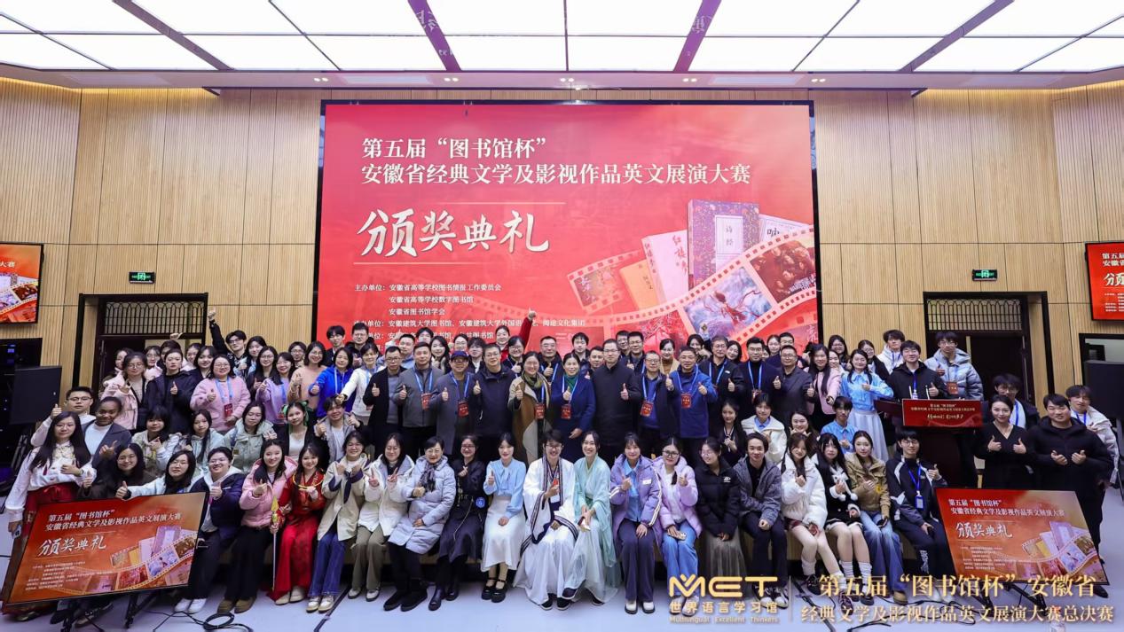 本网讯 12月21日,由安徽省高等学校图书情报工作委员会、安徽省高等学校数字图书馆、安徽省图书馆学会联合主办,安徽建筑大学图书馆及外国语学院共同承办的第五届“图书馆杯”安徽省经典文学及影视作品英文展演大赛总决赛,在我校紫云路校区徽韵楼二楼报告厅圆满落幕。