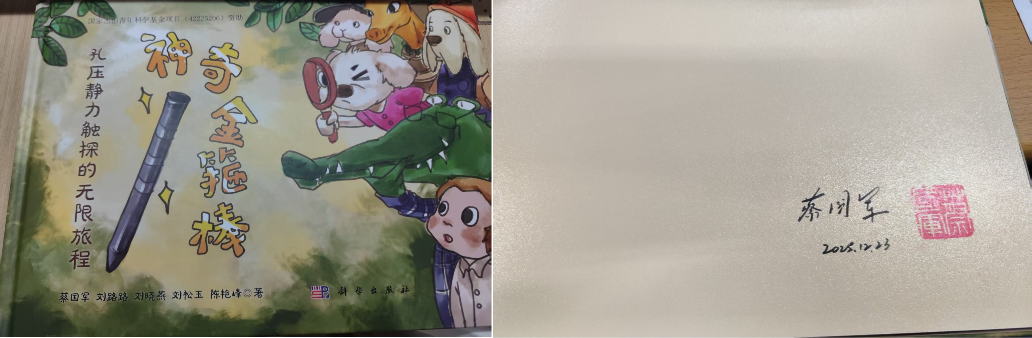 课堂上,蔡国军强调《土力学》作为一门理论性与实践性兼备的专业基础课程,需要同学们刻苦钻研《土力学》基础知识。随后,他介绍了团队近期出版的岩土工程原位测试科普读物《神奇金箍棒:孔压静力触探的无限旅程》。该书巧妙地将孔压静力触探技术解决复杂岩土工程问题的科学实践与经典的《西游记》故事相结合,既具科学性,又富故事性。蔡国军向同学们赠送了一本带有自己签名的读物,希望同学们能从中了解《土力学》中孔压静力触探技术这一“神奇”的岩土原位测试方法。
