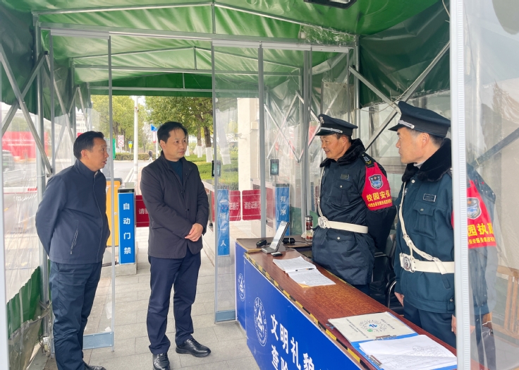 在门卫室,黄多能详细询问值班值守制度执行、应急联络畅通情况及突发事件处置流程,他要求值班人员必须坚守岗位、履职尽责,把好校园安全的“第一道大门”,确保突发情况第一时间响应、高效处置,坚决杜绝脱岗、漏岗问题。
