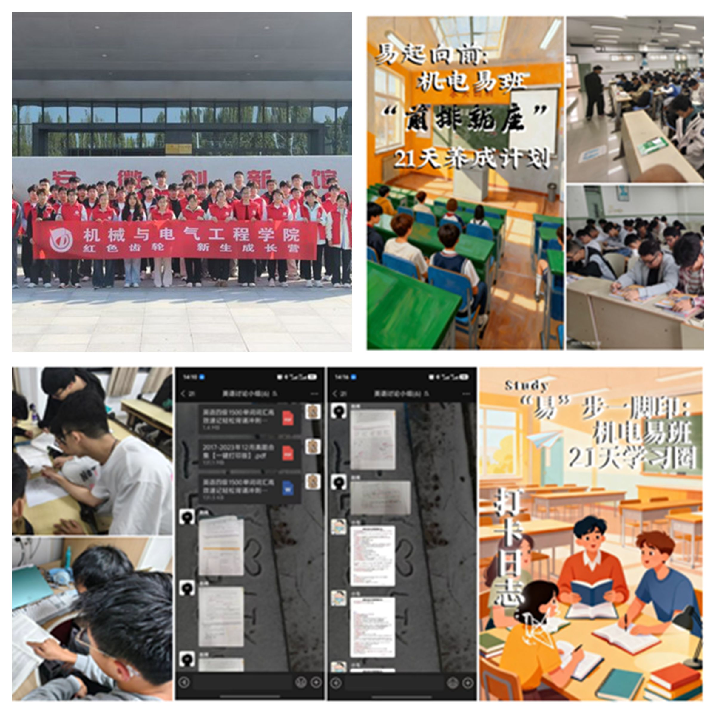 开展新生“红色齿轮”新生成长营系列活动,通过“前排就座”挑战、“21天学习圈”、“告别手机·专注45分钟”、“诚信承诺”宣誓仪式、打卡活动“安建大的早晨”、“晚安,机电人”等21天习惯养成行动,培养学生良好学习生活习惯;提前梳理延毕风险学生,开展学业帮扶、选课指导、谈心谈话,并联系家长,形成家校合力;开展多元化学风建设活动。连续举办十三届科技文化节、“研”续精彩,全力以“复”等朋辈引领经验分享等活动,充分发挥学生先锋模范作用;表彰2024年度学院“优秀学风班级”和“成长进步之星”;诚信考试教育主题班会全覆盖;举办四六级模拟考试。