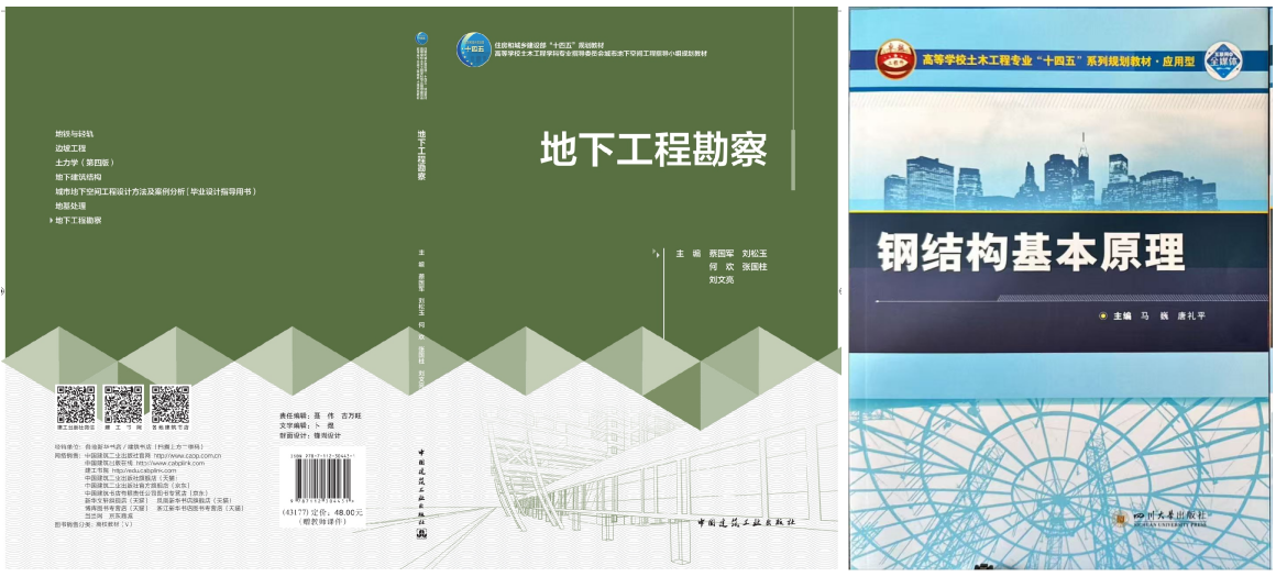 由蔡国军教授主编的住房和城乡建设部“十四五”规划教材《地下工程勘察》,将地下工程勘察领域的前沿理论与工程实践案例系统纳入教材,填补了行业教材在新型勘察技术应用方面的空白;蔡国军教授主编的《神奇金箍棒》作为国家杰出青年科学基金项目科普成果,以趣味化、具象化的表达诠释复杂的工程地质CPTU原位探测原理,实现了科研成果的科普化与教学化转化;其译著《静力触探工程实践》则引入国际先进工程技术经验,为教学资源建设注入新的国际视野。由马巍教授主编的《钢结构基本原理》、《钢结构设计》作为高等学校土木工程专业“十四五”系列规划教材,系统介绍了钢结构基本原理、设计方法。由韦璐教授主编的省级规划教材《路基路面工程》、石贤增教授主编的省级规划教材《道路勘测设计(第2版)》,紧密结合道路工程领域的最新技术标准和技术进展,使教材既具学术深度又具实践价值。