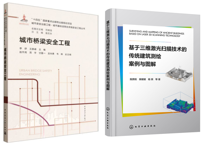 周宇副教授副主编的《城市桥梁安全工程》入选“十四五”国家重点出版物出版规划项目,教材聚焦城市桥梁安全保障这一行业痛点,整合了桥梁风险评估、灾害防控等领域的最新研究成果,为城市基础设施安全工程人才培养提供了核心教材。施贵刚教授、裴媛媛老师主编的《基于三维激光扫描技术的传统建筑测绘案例与图解》,将先进测绘技术与传统建筑保护相结合,收录了多个典型工程案例,实现了技术传承与创新发展的有机统一。