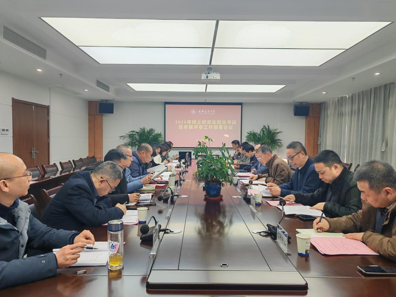 本网讯 1月12日下午,学校在紫云路校区徽风楼21楼第四会议室召开2026年研究生自命题评卷工作部署会议。校党委常委、副校长杨科主持会议。学校研究生招生工作领导小组全体成员、相关职能部门及研究生院有关同志参加会议。