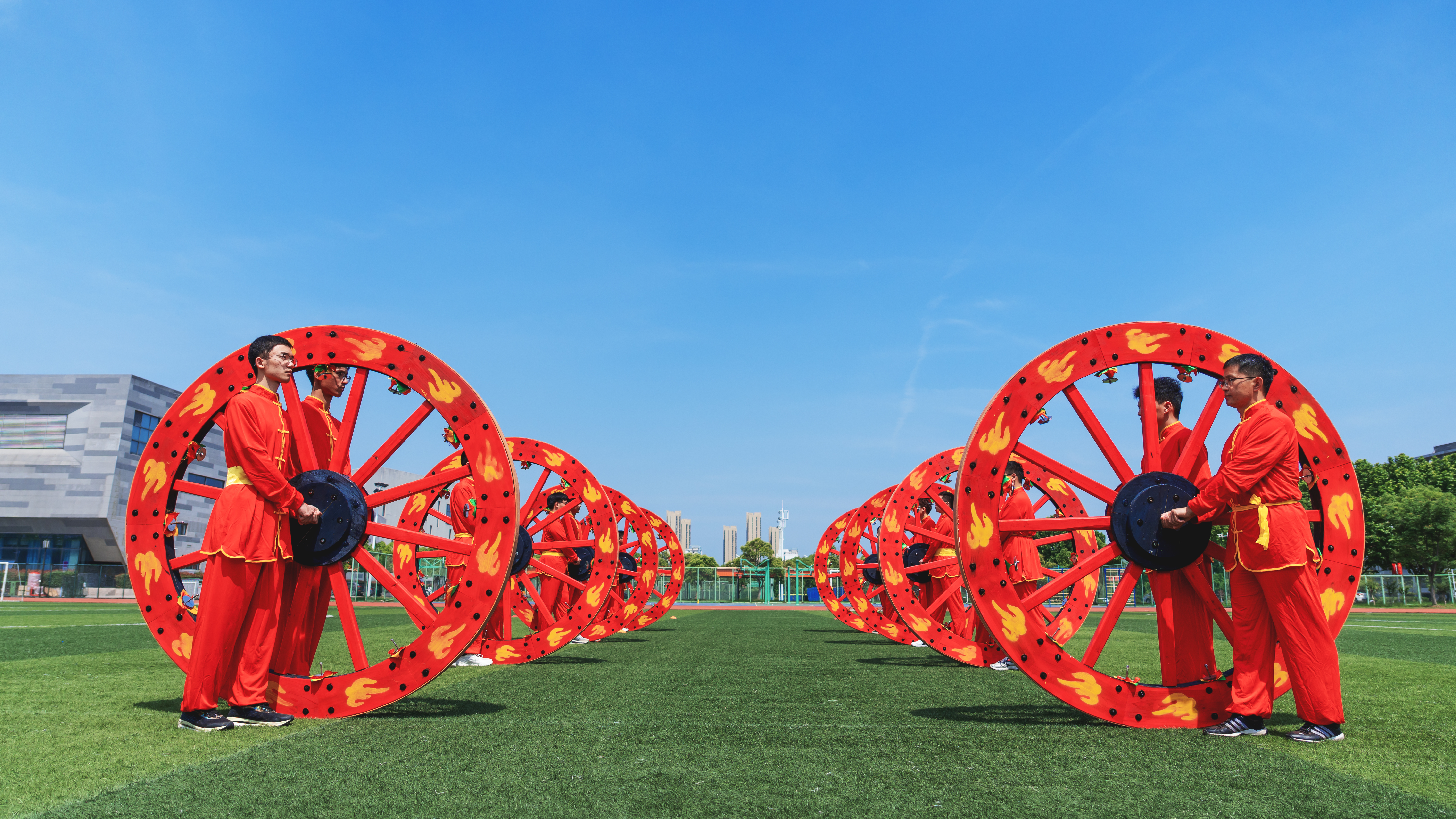学校着力打造“校园展演+社会服务+文化传播”多元实践平台,将徽州民俗体育有机融入校运会、文化节、开学典礼、新生游园会等各类校园活动中,仅2025年徽州民俗体育各类项目参与校内外重点活动超过十余次。2024年成功举办徽州民俗体育教学成果展,学校龙狮团队助力合肥马拉松赛事,2025年校园首届龙舟赛融合轩辕滚车、龙狮游园等元素,首次开创学校民俗体育游园活动,创新赛事体系,优化体育实践形式,不仅丰富了校园文化生活,更使学生在参与中深化对传统文化的理解与热爱。这些实践活动已成为体育育人的生动课堂,有效提升了学生的组织能力、团队精神与文化自信。